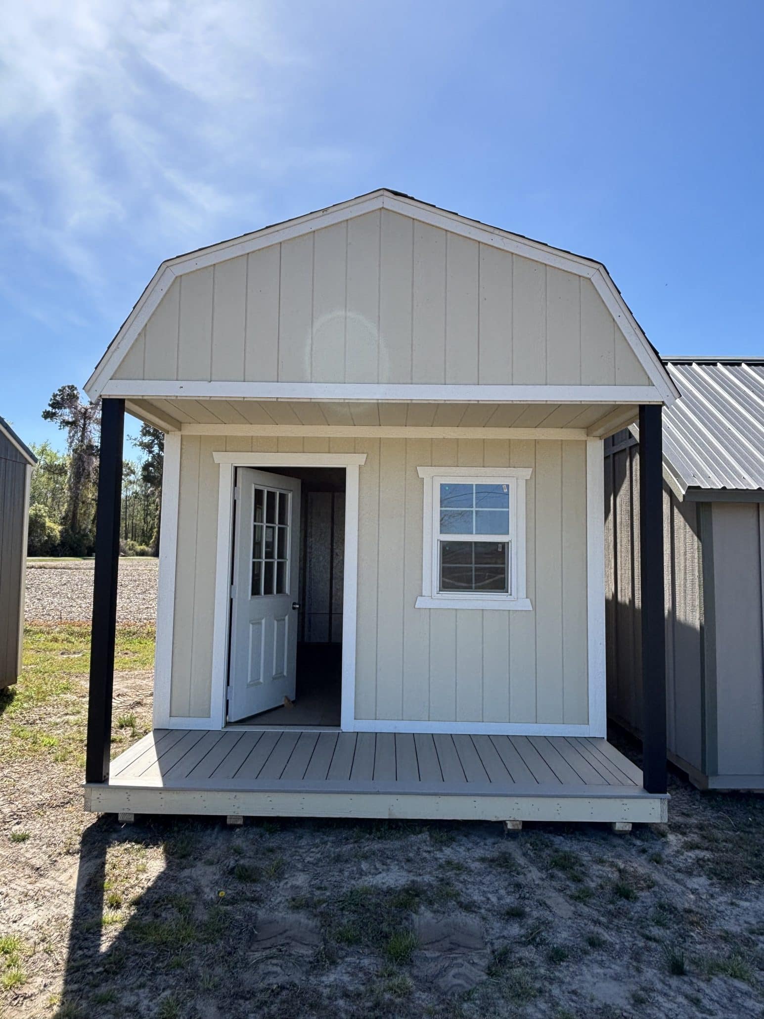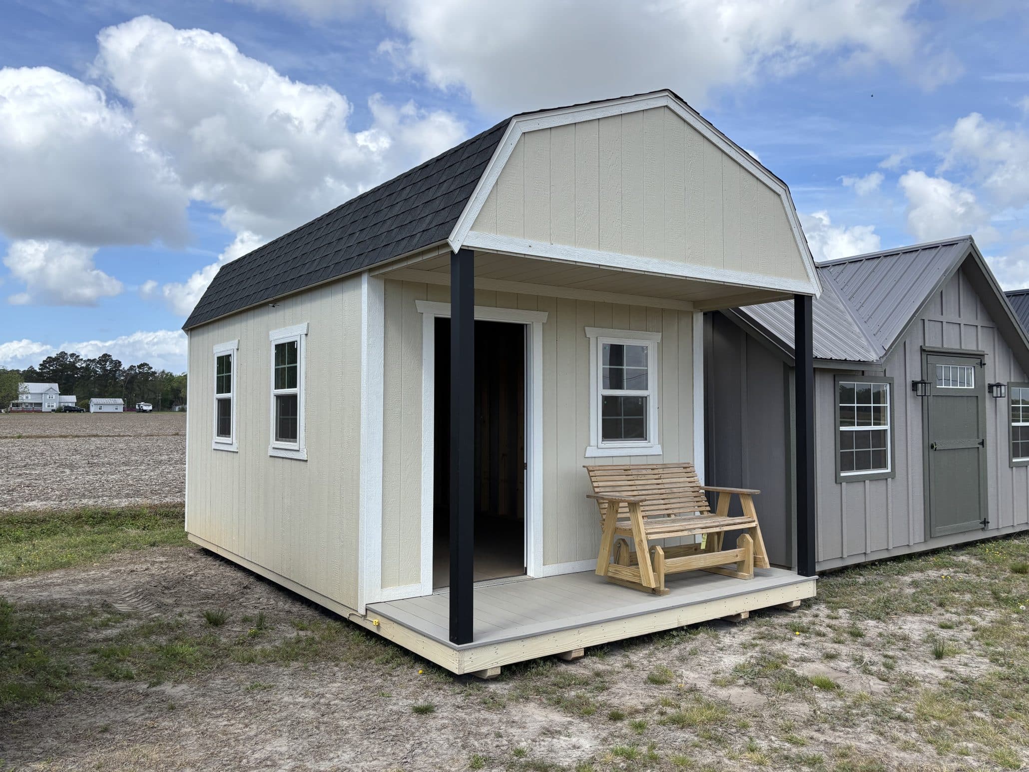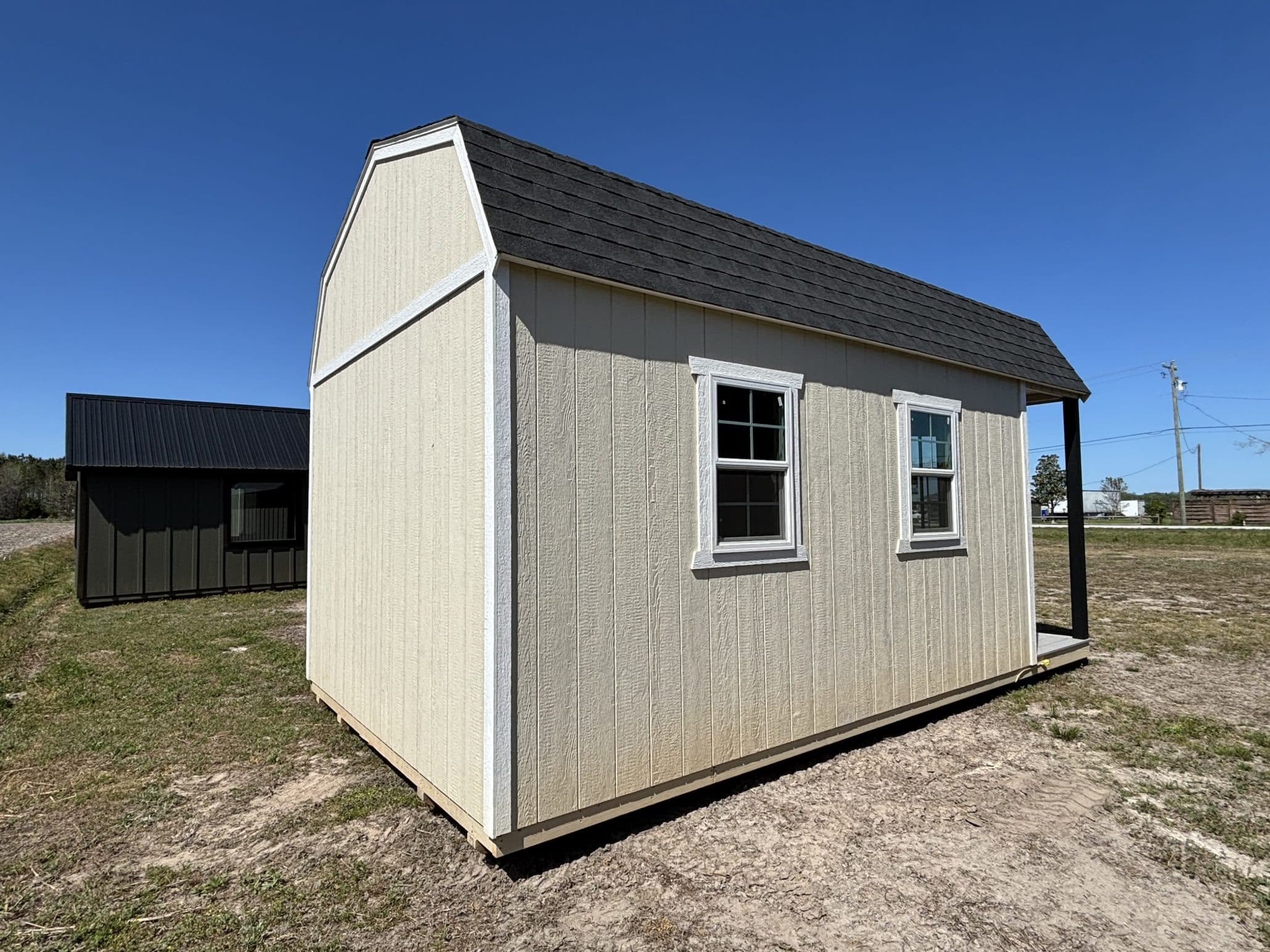 Shed – Lofted 12×20 with Front Porch, High walls, Electric Package, Shingle Roof